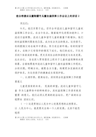 【七哥公文】2025年:在全市流动儿童和留守儿童权益保障工作会议上的讲话2+更多免费公文+VX:QiGeGongWen2024