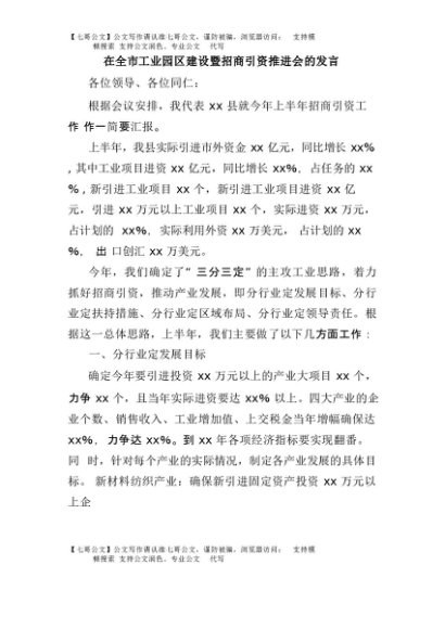 / 【七哥公文】2025年:在全市工业园区建设暨招商引资推进会的发言+更多免费公文+VX:QiGeGongWen2024