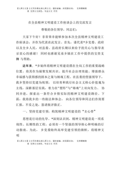 / 【七哥公文】2025年:在全县精神文明建设工作座谈会上的交流发言+更多免费公文+VX:QiGeGongWen2024