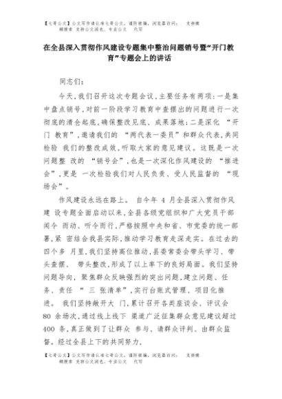 【七哥公文】2025年:在全县深入贯彻作风建设专题集中整治问题销号暨“开门教育”专题会上的讲话+更多免费公文+VX:QiGeGongWen2024