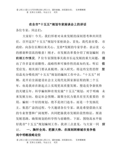 / 【七哥公文】2025年:在全市“十五五”规划专家座谈会上的讲话+更多免费公文+VX:QiGeGongWen2024