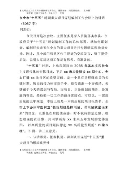 【七哥公文】2025年:在全市“十五五”时期重大项目谋划编制工作会议上的讲话(5057字)+更多免费公文+VX:QiGeGongWen2024