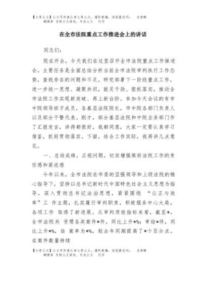 / 【七哥公文】2025年:在全市法院重点工作推进会上的讲话+更多免费公文+VX:QiGeGongWen2024