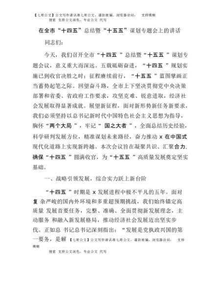 【七哥公文】2025年:在全市“十四五”总结暨“十五五”谋划专题会上的讲话+更多免费公文+VX:QiGeGongWen2024