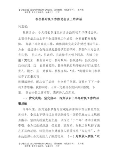 / 【七哥公文】2025年:在全县财税工作推进会议上的讲话+更多免费公文+VX:QiGeGongWen2024