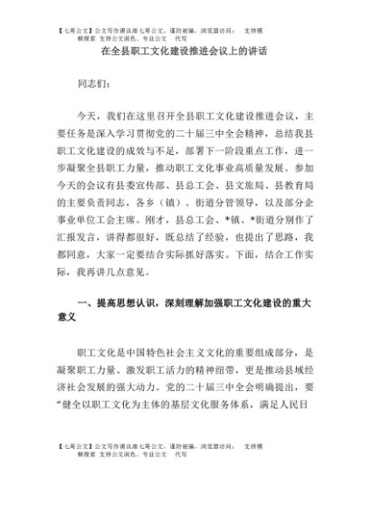 / 【七哥公文】2025年:在全县职工文化建设推进会议上的讲话+更多免费公文+VX:QiGeGongWen2024