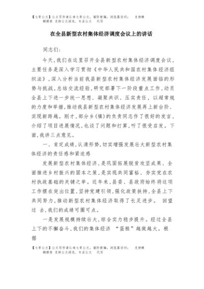 / 【七哥公文】2025年:在全县新型农村集体经济调度会议上的讲话+更多免费公文+VX:QiGeGongWen2024