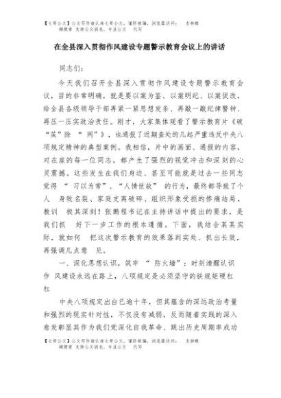/ 【七哥公文】2025年:在全县深入贯彻作风建设专题警示教育会议上的讲话+更多免费公文+VX:QiGeGongWen2024