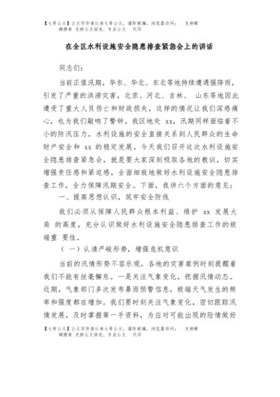 / 【七哥公文】2025年:在全区水利设施安全隐患排查紧急会上的讲话+更多免费公文+VX:QiGeGongWen2024