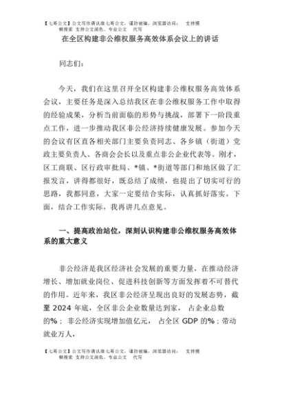 / 【七哥公文】2025年:在全区构建非公维权服务高效体系会议上的讲话+更多免费公文+VX:QiGeGongWen2024