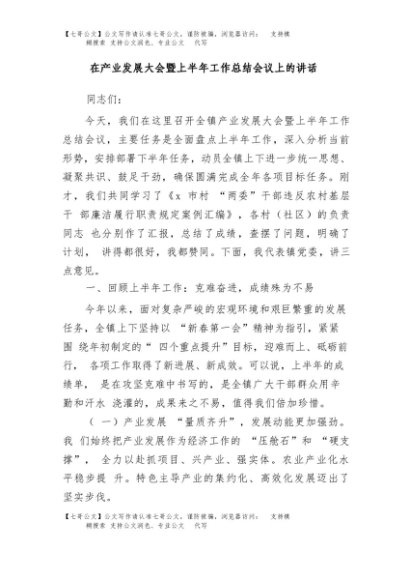 / 【七哥公文】2025年:在产业发展大会暨上半年工作总结会议上的讲话+更多免费公文+VX:QiGeGongWen2024