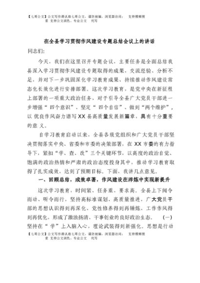/ 【七哥公文】2025年:在全县学习贯彻作风建设专题总结会议上的讲话+更多免费公文+VX:QiGeGongWen2024