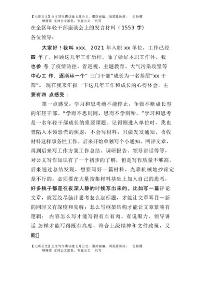 / 【七哥公文】2025年:在全区年轻干部座谈会上的发言材料(1553字)+更多免费公文+VX:QiGeGongWen2024