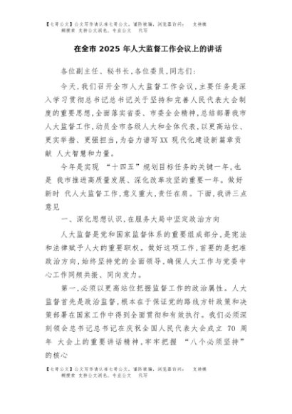 / 【七哥公文】2025年:在全市2025年人大监督工作会议上的讲话+更多免费公文+VX:QiGeGongWen2024