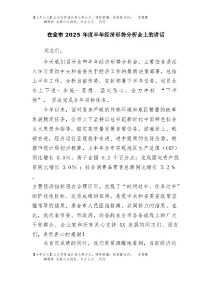 / 【七哥公文】2025年:在全市2025年度半年经济形势分析会上的讲话+更多免费公文+VX:QiGeGongWen2024