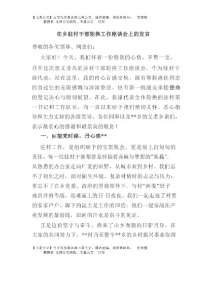 / 【七哥公文】2025年:在乡驻村干部轮换工作座谈会上的发言+更多免费公文+VX:QiGeGongWen2024