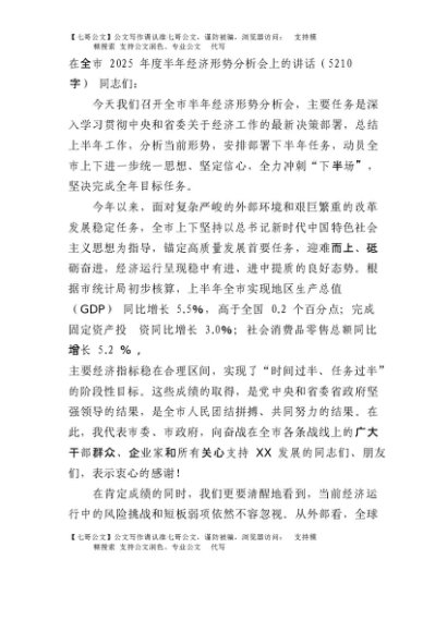【七哥公文】2025年:在全市2025年度半年经济形势分析会上的讲话(5210字)+更多免费公文+VX:QiGeGongWen2024