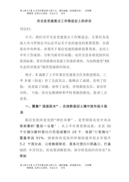 / 【七哥公文】2025年:在全县党建重点工作推进会上的讲话+更多免费公文+VX:QiGeGongWen2024