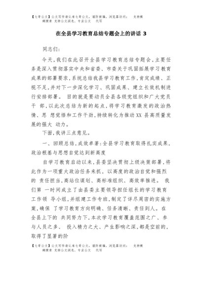 / 【七哥公文】2025年:在全县学习教育总结专题会上的讲话3+更多免费公文+VX:QiGeGongWen2024