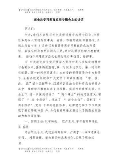 / 【七哥公文】2025年:在全县学习教育总结专题会上的讲话+更多免费公文+VX:QiGeGongWen2024