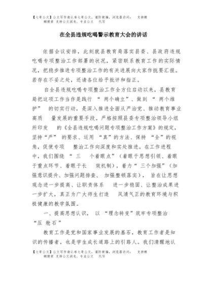 / 【七哥公文】2025年:在全县违规吃喝警示教育大会的讲话+更多免费公文+VX:QiGeGongWen2024