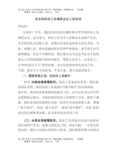 / 【七哥公文】2025年:在全县防汛工作调度会议上的讲话+更多免费公文+VX:QiGeGongWen2024