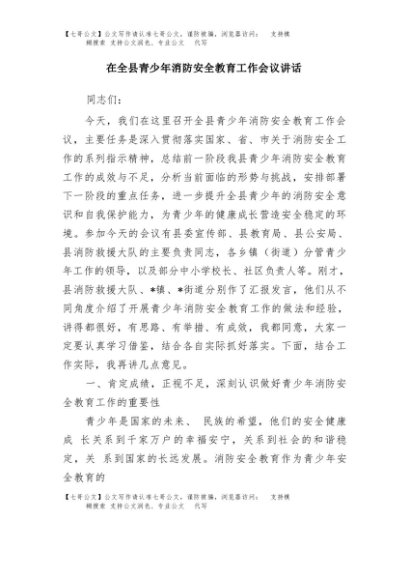 / 【七哥公文】2025年:在全县青少年消防安全教育工作会议讲话+更多免费公文+VX:QiGeGongWen2024