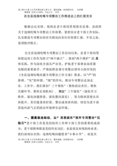 / 【七哥公文】2025年:在全县违规吃喝专项整治工作推进会上的汇报发言+更多免费公文+VX:QiGeGongWen2024