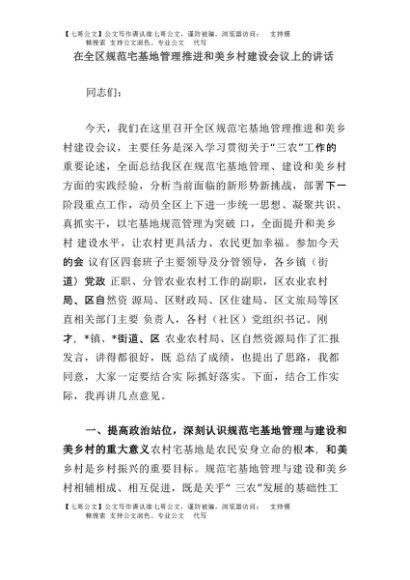 【七哥公文】2025年:在全区规范宅基地管理推进和美乡村建设会议上的讲话+更多免费公文+VX:QiGeGongWen2024