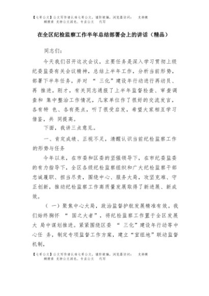 / 【七哥公文】2025年:在全区纪检监察工作半年总结部署会上的讲话(精品)+更多免费公文+VX:QiGeGongWen2024
