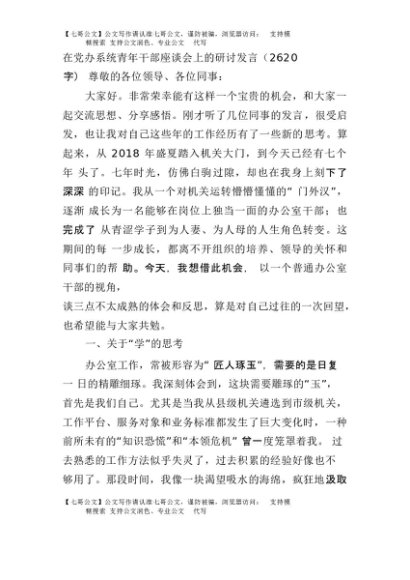 【七哥公文】2025年:在党办系统青年干部座谈会上的研讨发言(2620字)+更多免费公文+VX:QiGeGongWen2024