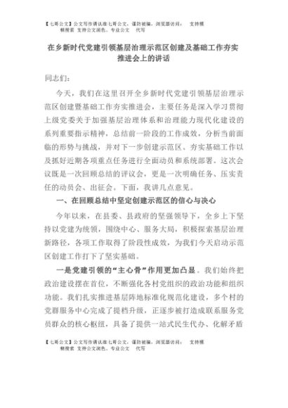 【七哥公文】2025年:在乡新时代党建引领基层治理示范区创建及基础工作夯实推进会上的讲话+更多免费公文+VX:QiGeGongWen2024