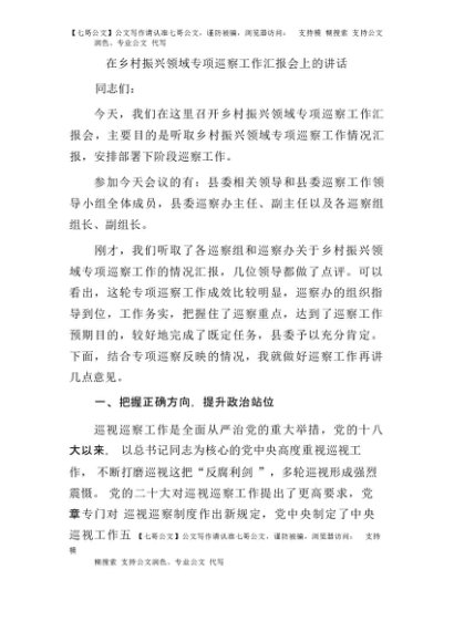 / 【七哥公文】2025年:在乡村振兴领域专项巡察工作汇报会上的讲话+更多免费公文+VX:QiGeGongWen2024