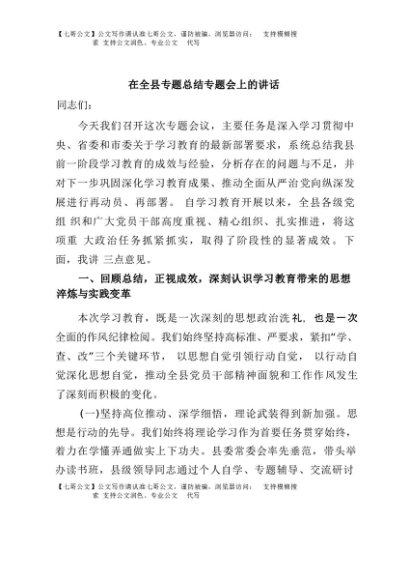 / 【七哥公文】2025年:在全县专题总结专题会上的讲话+更多免费公文+VX:QiGeGongWen2024