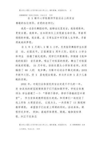 【七哥公文】2025年:在X镇中心学校教师节座谈会上的发言+更多免费公文+VX:QiGeGongWen2024