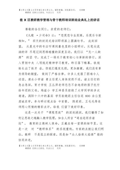 【七哥公文】2025年:在X区教研教学管理与骨干教师培训班结业典礼上的讲话+更多免费公文+VX:QiGeGongWen2024
