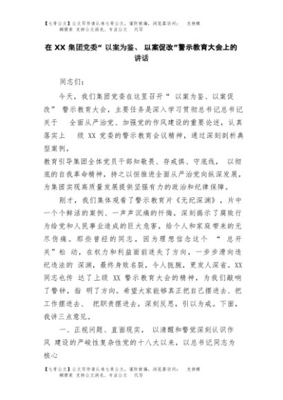 【七哥公文】2025年:在XX集团党委“以案为鉴、以案促改”警示教育大会上的讲话+更多免费公文+VX:QiGeGongWen2024