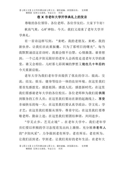 / 【七哥公文】2025年:在X市老年大学开学典礼上的发言+更多免费公文+VX:QiGeGongWen2024