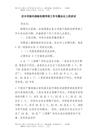 / 【七哥公文】2025年:在乡村振兴战略实绩考核工作专题会议上的讲话+更多免费公文+VX:QiGeGongWen2024