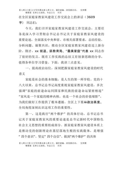 【七哥公文】2025年:在全区家庭家教家风建设工作交流会上的讲话(3609字)+更多免费公文+VX:QiGeGongWen2024