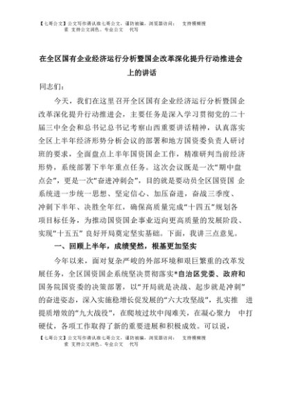 【七哥公文】2025年:在全区国有企业经济运行分析暨国企改革深化提升行动推进会上的讲话+更多免费公文+VX:QiGeGongWen2024