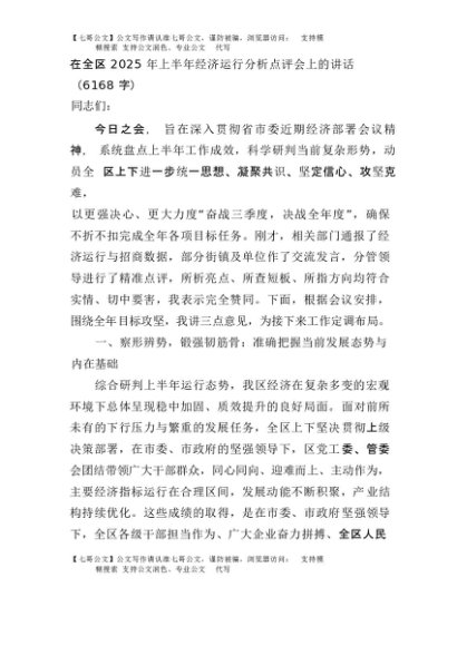 【七哥公文】2025年:在全区2025年上半年经济运行分析点评会上的讲话(6168字)+更多免费公文+VX:QiGeGongWen2024