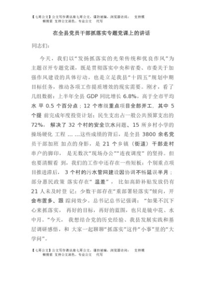 / 【七哥公文】2025年:在全县党员干部抓落实专题党课上的讲话+更多免费公文+VX:QiGeGongWen2024
