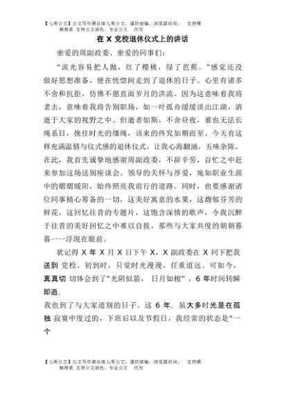 / 【七哥公文】2025年:在X党校退休仪式上的讲话+更多免费公文+VX:QiGeGongWen2024