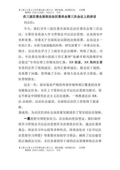 / 【七哥公文】2025年:在三届区委全面依法治区委员会第三次会议上的讲话+更多免费公文+VX:QiGeGongWen2024