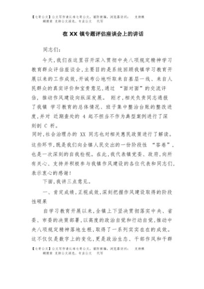 【七哥公文】2025年:在XX镇专题评估座谈会上的讲话+更多免费公文+VX:QiGeGongWen2024