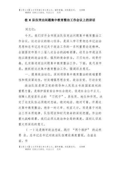/ 【七哥公文】2025年:在X队伍突出问题集中教育整治工作会议上的讲话+更多免费公文+VX:QiGeGongWen2024
