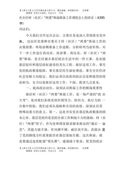 【七哥公文】2025年:在全区村(社区)“两委”换届准备工作调度会上的讲话(4395字)+更多免费公文+VX:QiGeGongWen2024