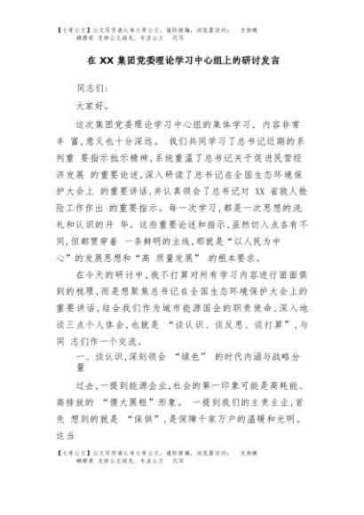 / 【七哥公文】2025年:在XX集团党委理论学习中心组上的研讨发言+更多免费公文+VX:QiGeGongWen2024