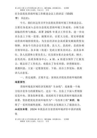 【七哥公文】2025年:在全县优化营商环境工作推进会议上的讲话(5505字)+更多免费公文+VX:QiGeGongWen2024
